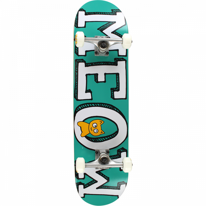 Don't want to wait to skate? Then get a complete skateboard that comes ready to roll right out of the box! This Meow Skateboards Logo Teal Complete Skateboard from Meow measures 8" wide x 32" long and perfect for skaters of all skill levels. The world is your oyster on this factory pre-assembled complete skateboard, which includes trucks, wheels, bearings, hardware, and grip tape. Get out and shread the streets with Warehouse Skateboards!